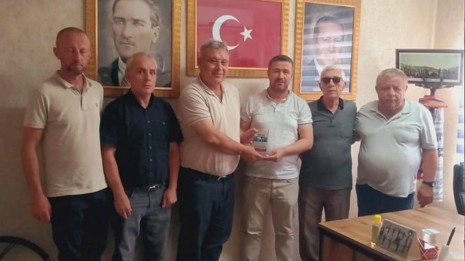 Mustafakemalpasa CHP ilçe Başkanı Sayın Gökhan DEMİR’i Türk Daması Federasyonu olarak ziyaret edip 25.yıl anısına plaket takdim ettik. Sevgili başkanımıza ilgi ve alakaları, destekleri için şükranlarımızı sunuyoruz.